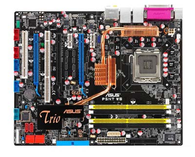 该主板延续华硕高端主板设计风格,采用黑色PCB+全固态电容,北桥芯片和供电模块采用纯铜+热管散热,南桥和PCI-E转换芯片上均覆盖了散热片。造型特别的北桥纯铜散热片,再配合华硕StackCool2和特制PCB技术,使其在散热上表现相当出色。华硕P5NTWS采用8相供电设计,支持全固态电容和半封闭电感。特别值得一提的是,该主板ADP3198的PWM控制芯片原本最大仅支持到4相,经由华硕自行设计的AS3336GASIC芯片,使其扩展到8相,为1333MHz前端总线的四核酷睿2提供澎湃动力。
