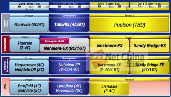 英特尔的服务器处理器发展路线图,2009年正是其全新的Nehalem家族大展身手的一年
