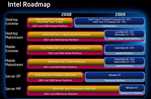 英特尔2009规划 全面普及Nehalem 投产32nm