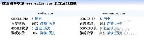 前一段时间,万能导航网的主域名wndhw.com的空间进行了一次搬家,搬到一家叫新动互联的空间上,过几天查询这个网站SEO发现这个主域名的PR值已经由原来的4升到了5,网站的收录也有了大大的改善,而停留在原来空间上的域名wndhw.cn的域名的SEO还是原来的情况,没有发生任何变化。