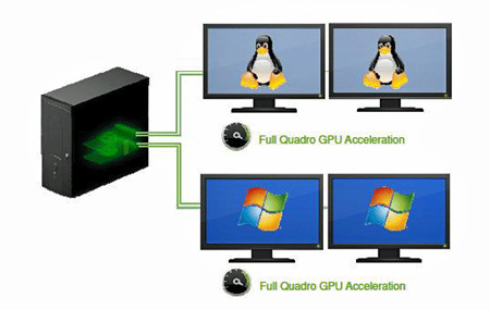 丽台Quadro FX3800一个强大的功能是:让你的工作站会"画"。NVIDIA® SLI®(速力™)多操作系统技术让用户能够在单个系统上运行多个Windows或Linux环境,每个操作系统都直接交由Quadro FX 3800图形解决方案来管理。 专业应用程序在两个操作系统上均能够充分利用Quadro GPU加速的特性。