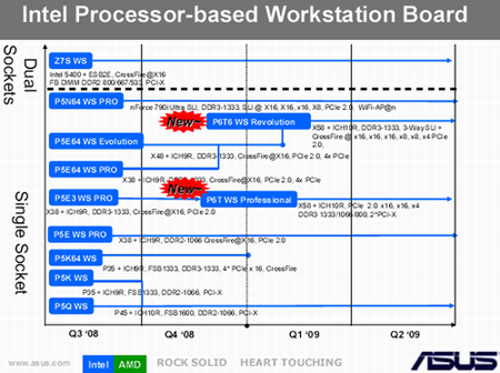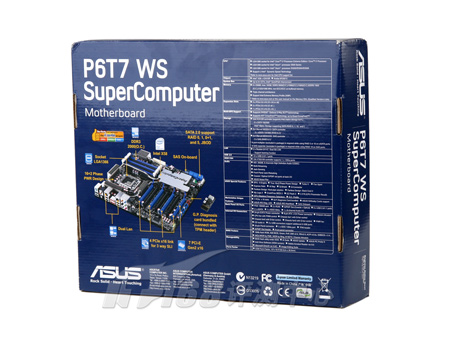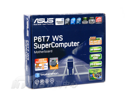 最近,我们又拿到了一款华硕的新产品。这款产品在P6T6 WS Revolution的基础上进一步提升,提供了7条PCI-E x16模样的插槽。这款扩展功能强大的产品名为P6T7 WS SuperComputer。