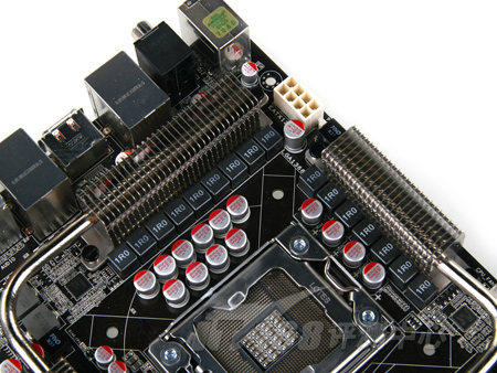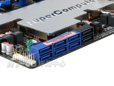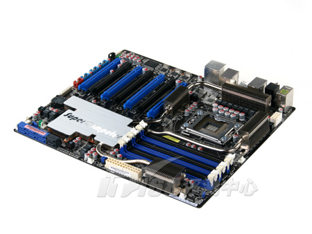 在华硕的经典定义中,黑色PCB意味着高端(当然,现在一些低端产品也用上了黑色),这款P6T7 WS SuperComputer主板就是一款全黑色PCB的产品。而且在外观看来颇引人注目的是,它的南桥和北桥都使用了银色热管,上面印有“SuperComputer”字样,看起来更是特别。