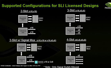 在我们之前接触过的主板中,无论是X58、X48还是老规格的975X,都提供了SLI功能,只要主板能够提供两条PCI-E x16插槽。不过由于授权的关系,NVIDIA为了保护自己的利益之前一直拒绝为Intel授权,直到今年X58芯片组发布,NVIDIA才为Intel敞开了怀抱。