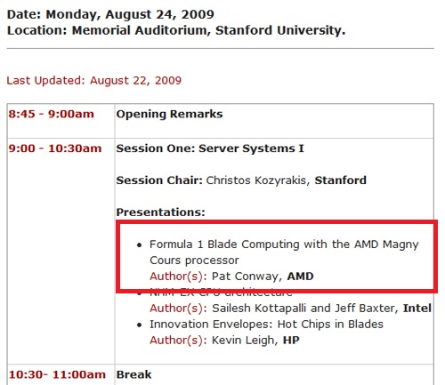 预计在不久的将来(AMD官方给出的时间是2010年),我们就能够看到这款多达12个核心的处理器??Magny-Cours。正如AMD之前为自家处理器命名的习惯一样,继巴塞罗那、上海和伊斯坦布尔之后,Magny-Cours也是来自于法国的一个名为“马尼库尔”的城市。之前,或许您也在F1比赛中听说过这个名字(著名的马尼库尔赛道),但是我们今天介绍的却是一款处理器。