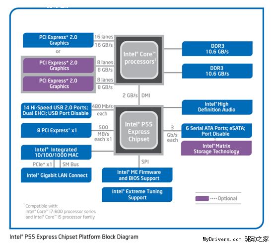 除了芯片方面进军单路服务器外,英特尔也特意为单路服务器设计了芯片组--P55 Express芯片组。