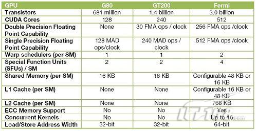 第一,Fermi支持包括C++在内的 C, Fortran, Java, Python, OpenCL DirectCompute.多种语言或API接口的开发。