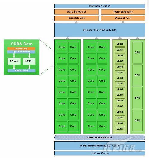 在NVIDIA官方说法看来,Fermi是继G80架构(G9x,GT200都属于G80第一代并行计算GPU架构,但当年没有命名)后,对GPU作出重大改进的一次革命性产品。对于GPU并行计算而言,Fermi是第一个完美的适合并行运算的处理器。接下来,我们来看一下Fermi的几个重要的革新内容。