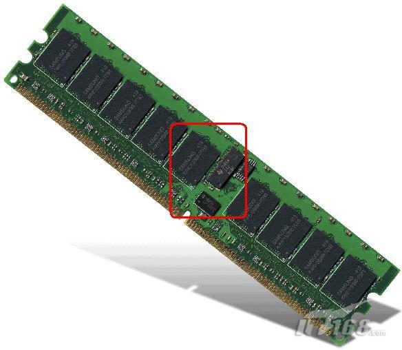 红框内是R-ECC内存比普通内存多出的部分:一个额外的ECC内存芯片(大)、一个Register芯片(中)、一个PLL芯片(小)