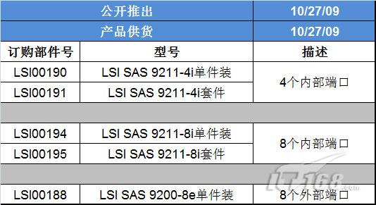 本次发布的LSI HBA卡被命名为9200系列,基于LSI SAS2008 6Gb/s SAS控制器IC,细分三个型号:带有4个内部端口的LSI SAS9211-4i;8个内部端口的LSI SAS9211-8i;以及8个外部端口的LSI SAS9211-8e。