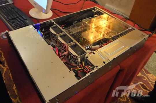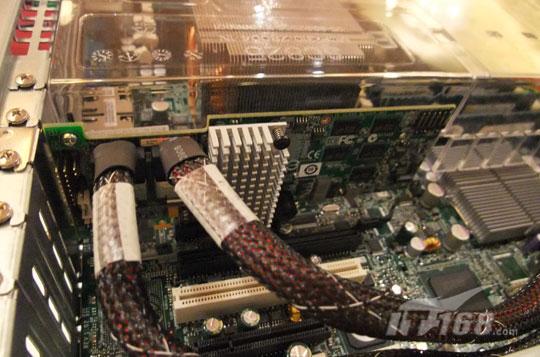 此外,LSI现场展出了一款基于6Gb/s SAS+SATA MegaRAID 9260-8i RAID控制器的端到端6Gb SAS解决方案。后端24块2.5寸硬盘组成RAID 0组连接到SAS exper,exper通过线缆与前端9260-8i RAID控制器连接,实现端到端6Gb/s传输带宽。根据LSI给出的测试数据,在此测试条件下,顺序读性能超过3000MB/s。