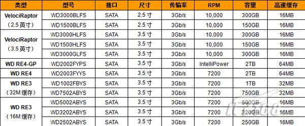 按硬盘的尺寸划分:WD绝大多数属于3.5英寸的机械硬盘。近两年来,3.5英寸万转硬盘逐渐向2.5英寸产品转变正成一种趋势,在体积、重量、能耗上2.5英寸的盘要优于3.5英寸。同时性能增强,寻道时间也相应缩短。因此,WD推出的WD VelociRaptor 系列中,企业级产品中有两款是2.5英寸。即 WD3000BLFS和 WD1500BLFS。