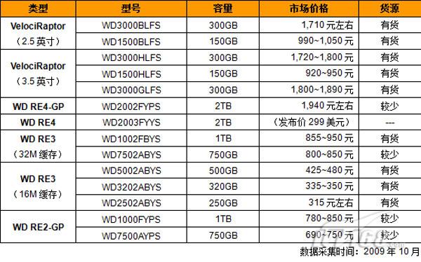 WD的硬盘在全国各地,基本都有代理。其中多个省会级城市的市场价格并不一致,相差百元左右很是正常,尤其是高端企业级产品。细看,每周的市场价格也常有变化,即便在同一卖场几十元内的浮动,也经常见。随者货源的松紧,价格常常都有变化。一些老产品(如WD RE2-GP)和新产品(如WD RE4-GP),由于货源情况的变化,价格会呈现出起伏的特点。下表,列举出市场中主要产品的价格范围,以供参考。