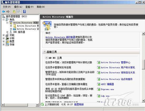 1. 在服务器管理器界面,展开【角色】节点,选择【Active Directory 域服务】。