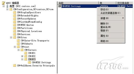 5. 右击【CN=NTDS Settings】,删除即可。如图3