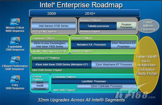 除了X86服务器领域两个最重要的产品至强5600和Nehalem-EX之外,预计今年的IDF也会披露其他服务器相关产品技术的最新进展,如Tukwila安腾、面向高性能计算的AVX指令集、UEFI统一可扩展固件、SSI标准刀片服务器、下一代处理器微架构SyBridge等,我们将继续关注和报道。
