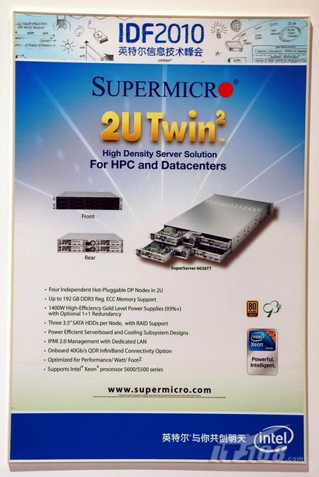 Super Micro 电脑公司(纳斯达克: SMCI),作为业界设计性能优化服务器的主导者在位于北京国家会议中心的 IDF G8展台展示新一代对云计算和 HPC 应用作优化设计的 Twin 架构的服务器产品。另外 supermicro 作为金牌赞助商出席 IDF,定于下午1点在306A 房间发表“Twin 架构和云计算”的主题演讲。