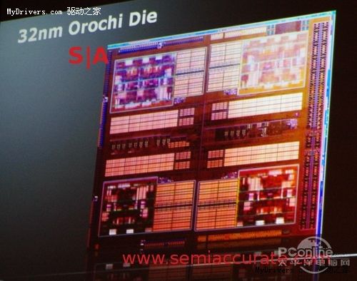 该处理器开发代号“Orochi”(大蛇),是推土机家族的首款产品,采用GF 32nm HKMG工艺制造,面向服务器领域,将于2011年下半年发布。