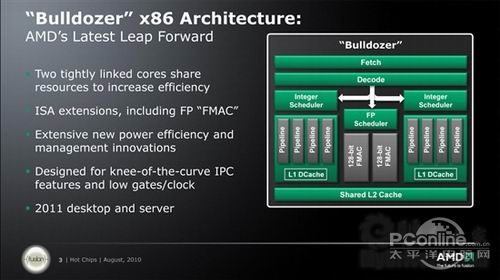 上月底的Hot Chips 22高性能大会上公布“推土机”处理器架构大量技术细节之后,AMD今天又在GlobalFoundries GTC 2010全球技术大会上首次放出了新处理器的内核照片。