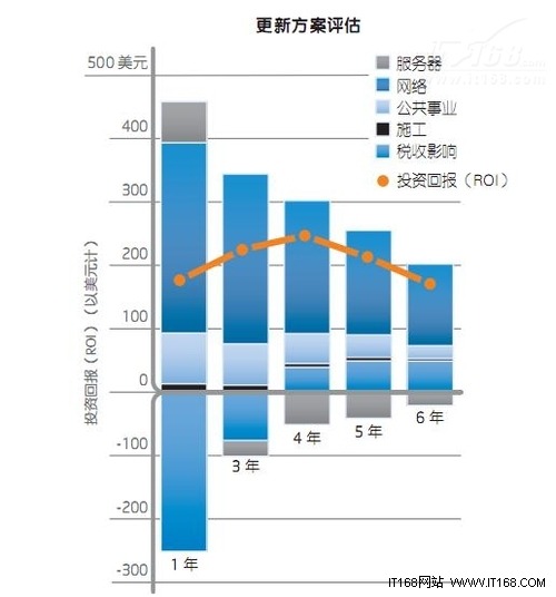 由于企业数据中心内服务器的多样性,因而批量性的阶梯式更新服务器是笔者推荐的更新方式。按计划每季度或每年更新一定数量的服务器可以以一个有效的可预知的过程增加自身数据中心效率,实现战略性的成本控制??具体更新数量和资金投入以及回报率计算需要财务部门和IT部门根据实际情况精确评估。