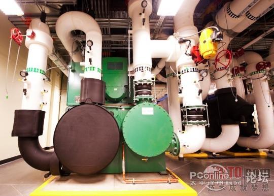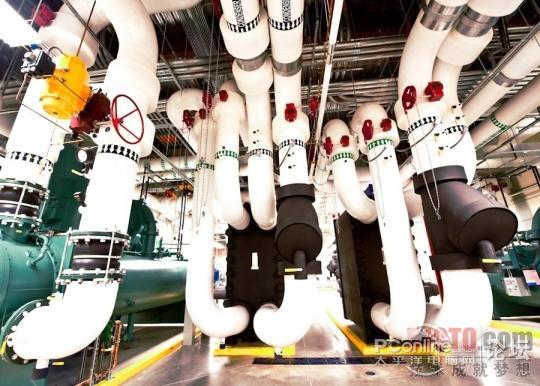 虽然微软的目标是随时可以利用冷空气制冷,但是它也使用了冷水机组,使得机房在炎热的天气中依然保持凉爽。保证机房凉爽的水冷系统拥有长达7.5英里的冷水管道。