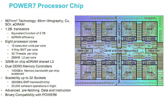对Power7处理器更多技术细节感兴趣的读者请点击这里,对Power 7中蕴含的四大技术有兴趣的读者请点击这里。